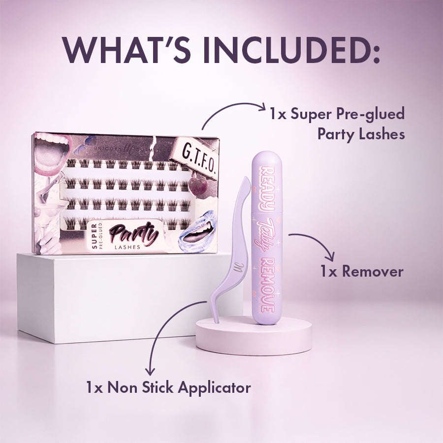 Meet the Super Pre-Glued Party Lash Kit by Unicorn Cosmetics — the complete lash system designed to give you flawless lashes in seconds.